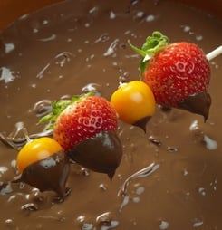 National Chocolate Fondue Day dips in! Make a simple chocolate fondue at home. Grab some fruits, marshmallows, and cookies for dipping.