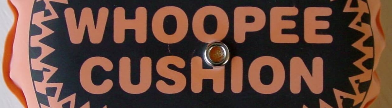 Use some recordings found on the internet, make fart sounds by blowing air into the hand, or get out the old standard fart jokester – the Whoopee Cushion!