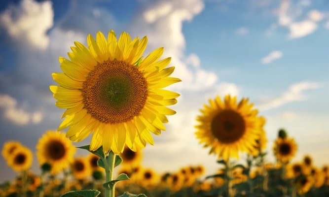 Vibrant blooms, facing the sun, symbolizing joy, optimism, and resilience, painting landscapes with their golden hues.